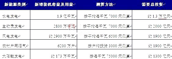 根據前瞻產業研究院發布的《2015-2020年中國新能源行業發展前景與投資戰略規劃分析報告》顯示,2005-2020年中國需要能源投資18萬億元,到2020年,我國在新能源市場投資額將超過3萬億元,市場規模極大。其中,節能、新能源、環保需要7萬億元,傳統能源勘探開發、新能源和節能技術研發等方面都面臨巨大資金缺口。