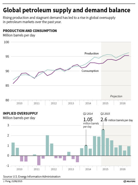 EIA預計供應過剩的情形將至少持續到2017年,但也有人認為,過剩期可能持續更久。