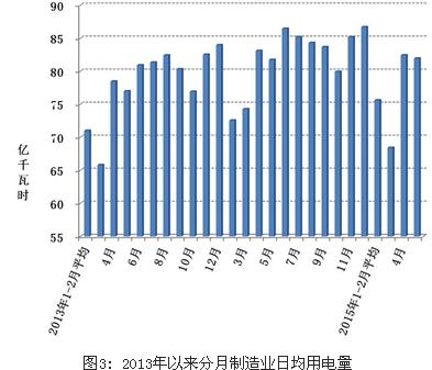1-5月份,全國制造業(yè)用電量11598億千瓦時,同比下降0.1%,增速同比降低5.5個百分點。5月份,全國制造業(yè)用電量2541億千瓦時,同比增長0.3%;制造業(yè)日均用電量82.0億千瓦時/天,分別比上年同期和上月增加0.2億千瓦時/天和減少0.5億千瓦時/天。
