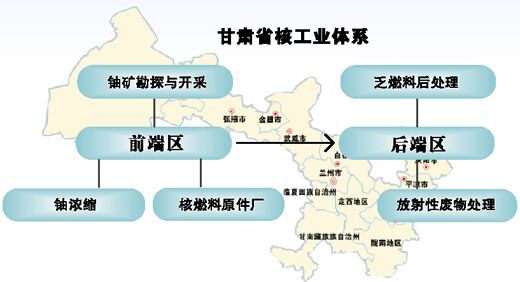 雖然沒有核電項目,甘肅的核產業卻涉及了核燃料循環體系中的鈾礦地質勘探與采冶、鈾的同位素分離、核燃料元件的制造、核燃料后處理和放射性廢物處理處置等關鍵環節,已經擁有了相對完整的核工業體系。尤其在鈾濃縮和后端處理方面,更是我國核產業發展的堅強“后盾”。