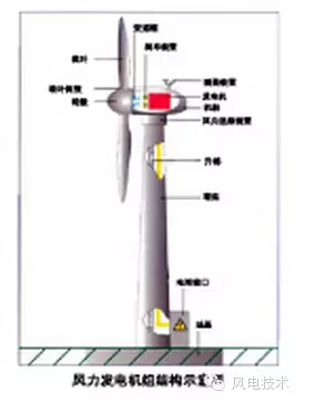 塔架。風力發電機組需要通過塔架將其置于空中,以獲取更多的風能。塔架內通常裝有梯子,以便工作人員沿梯子進入塔架頂端的機艙進行檢修操作。