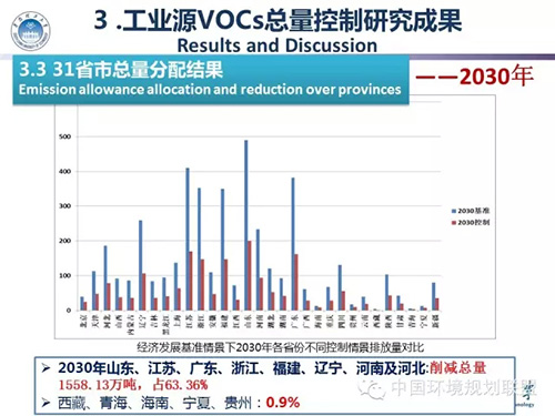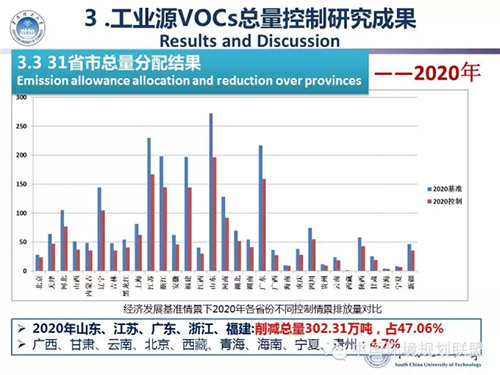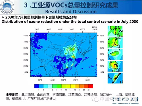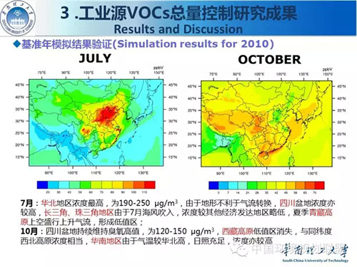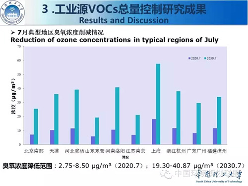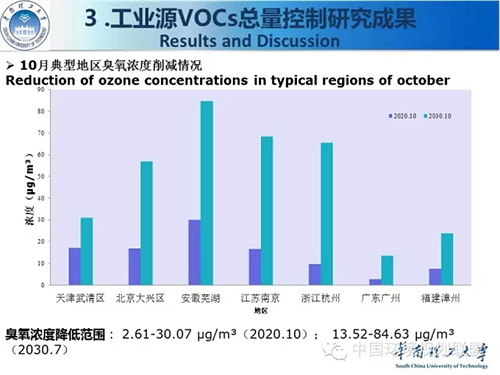 在空氣質(zhì)量影響評估方面,以7月、10月為代表月份,2020年7月,我國在總量控制條件下,典型城市的臭氧濃度降低范圍為2.75-8.50μg/m³,同年10月為2.61-30.07μg/m³,2030年7月為19.30-40.87μg/m³,同年10月為13.52-84.63μg/m³,結(jié)果證明,VOCs(揮發(fā)性有機(jī)物)的減排能為臭氧濃度的降低帶來較大幫助。