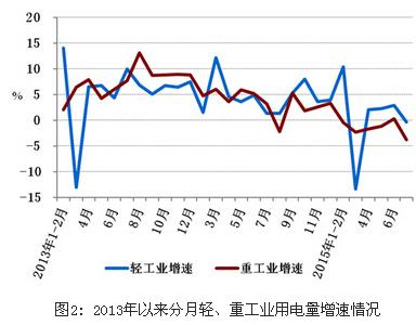 1-7月份,全國(guó)工業(yè)用電量22504億千瓦時(shí),同比下降0.9%,增速同比降低5.5個(gè)百分點(diǎn),占全社會(huì)用電量的比重為71.1%,對(duì)全社會(huì)用電量增長(zhǎng)的貢獻(xiàn)率為-77.2%。其中,輕、重工業(yè)用電量分別為3810和18694億千瓦時(shí),同比分別增長(zhǎng)1.7%和下降1.4%,增速同比分別降低2.3和6.2個(gè)百分點(diǎn)。