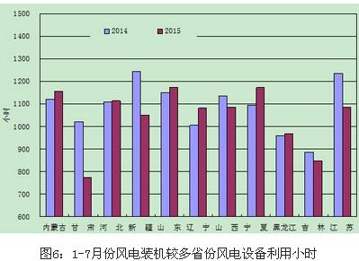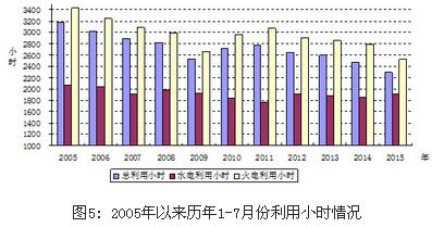 分類型看,1-7月份,全國(guó)水電設(shè)備平均利用小時(shí)1911小時(shí),同比增加59小時(shí);水電裝機(jī)容量超過1000萬(wàn)千瓦的7個(gè)省份中,湖南、青海和四川同比分別下降210小時(shí)、71小時(shí)和31小時(shí),云南增加39小時(shí),貴州、廣西和湖北同比分別增加555小時(shí)、360小時(shí)和171小時(shí)。全國(guó)火電設(shè)備平均利用小時(shí)2531小時(shí),同比下降259小時(shí),降幅比2014年同期擴(kuò)大203小時(shí);其中青海3202小時(shí),海南、寧夏和江蘇超過3000小時(shí);吉林、四川、云南和西藏火電設(shè)備利用小時(shí)低于2000小時(shí),分別為1900小時(shí)、1768小時(shí)、1051小時(shí)和55小時(shí);與上年同期相比,共有28個(gè)省份火電利用小時(shí)同比下降,其中,云南和北京下降超過600小時(shí)。全國(guó)核電設(shè)備平均利用小時(shí)4183小時(shí),同比上升114小時(shí)。全國(guó)風(fēng)電設(shè)備平均利用小時(shí)1107小時(shí),同比下降10小時(shí)。