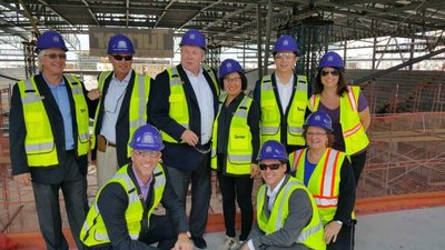 SPI綠能寶CEO葉得軍(后排右2)、CFO劉菁(后排右3)與SPI綠能寶CSO Steve Kircker(后排左3)參觀正在建設的“黃金1號中心”