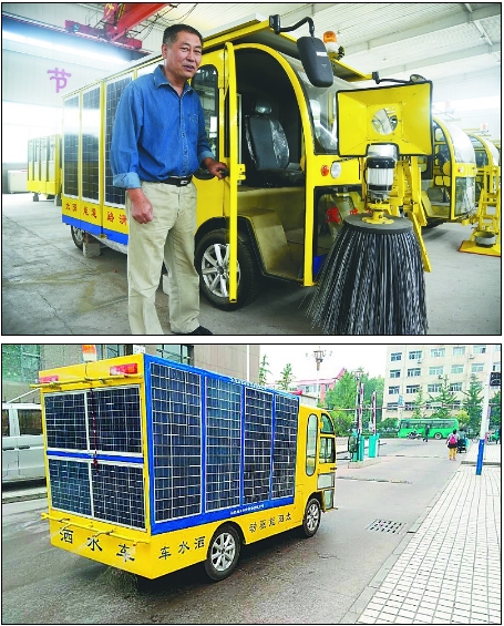如今在承德縣縣城的大小街道上,太陽能清掃車、灑水車成了當地一道靚麗風景線。這些零排放、節能環保的環衛車輛,均出自該縣環衛管理所所長王曉東的奇思妙想,通過他的發明創造,在過去4年時間里,承德縣縣城道路機械化清掃率從0增加到了63%,每年節約燃油費用20多萬元。