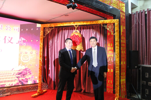 商丘市委副書記、市長李公樂(右)祝賀亞太能源成功上市