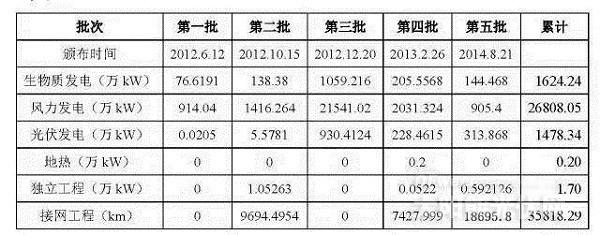 從上表可以看出,五批項目中,容量最大的是風電,為268.1GW;其次是生物質能發電,為16.2GW;光伏的容量僅為14.8GW。