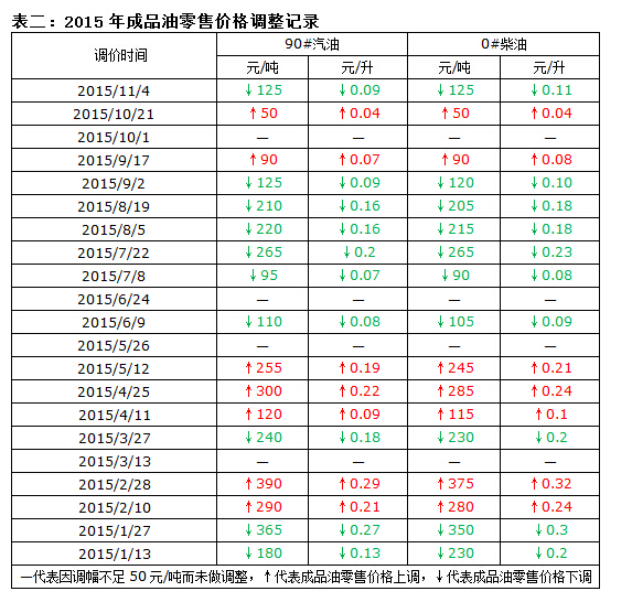 根據(jù)國內(nèi)現(xiàn)行成品油定價機(jī)制調(diào)價周期測算,12月1日24時將迎來2015年的第二十三輪汽柴油調(diào)價節(jié)點。