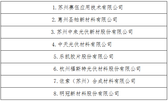 通過光伏背板材料“領跑者”耐久性階段測試的企業清單