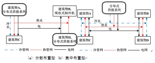 圖1  兩種區域型分布式供能系統示意圖