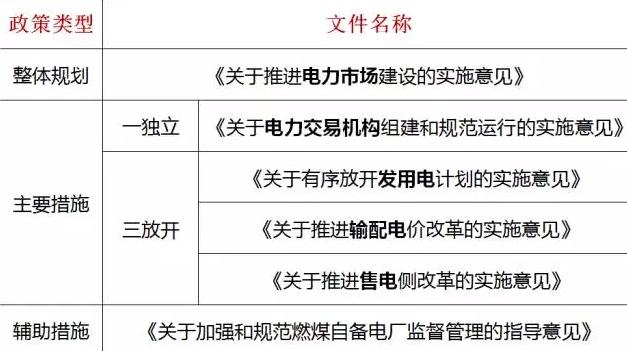 新電改6個配套文件涵蓋輸配電價改革、電力市場建設、電力交易機構組建和規范運行、有序放開發用電計劃、售電側改革、加強和規范燃煤自備電廠監督管理等方面。根據6大配套文件的內容,我國將逐步擴大輸配電價改革試點范圍;將組建相對獨立的電力交易機構;將建立優先購電、優先發電制度;符合市場準入條件的電力用戶可以直接與發電公司交易。