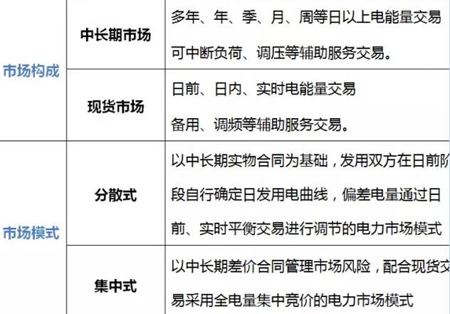作為一個規劃性的文件,《關于推進電力市場建設的實施意見》將電力市場分為了“中長期市場”和“現貨市場”,同時將市場的模式分為“分散式”和“集中式”。