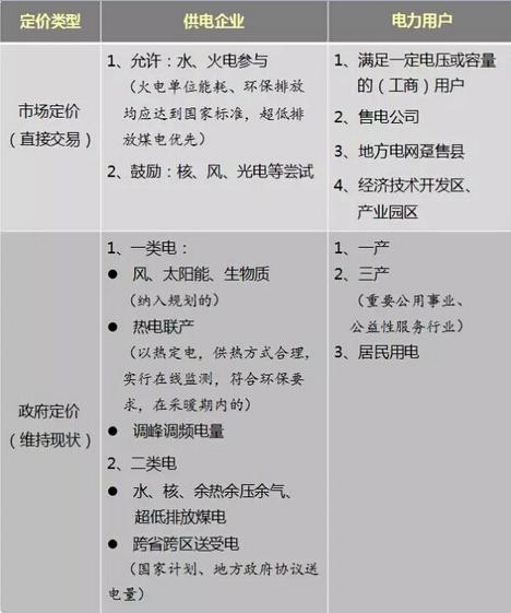 但是,這份文件并沒有給出的具體的進度要求,例如“什么時間放開,分幾批放開,每次放開百分之多少電量“這種數據指標。而只是宏觀地要求“放開/保障什么類型的發電廠、電力用戶“,具體情況見下表。