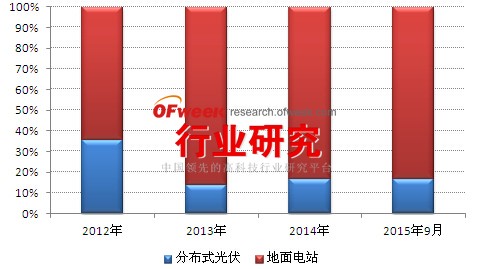 圖表2:2012-2015年9月中國分布式光伏占比情況(%)