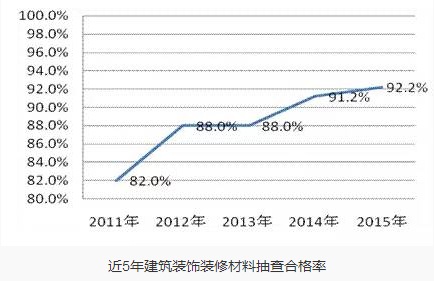 2015年全年質(zhì)檢總局抽查了29種5120家企業(yè)生產(chǎn)的5226批次產(chǎn)品,抽查合格率為92.2%,比2014年提高了1個(gè)百分點(diǎn)。其中,實(shí)木地板的抽查合格率為100%;水泥、膠合板、溶劑型木器涂料、給水用聚乙烯(PE)管材、建筑用外墻涂料、建筑防水卷材、陶瓷磚、日用陶瓷、中密度纖維板、合成樹(shù)脂乳液內(nèi)墻涂料、防火門(mén)、浸漬紙層壓木質(zhì)地板、冷軋帶肋鋼筋、鋼筋混凝土用熱軋帶肋鋼筋、地坪涂裝材料、硬聚氯乙烯(PVC-U)管材16種產(chǎn)品抽查合格率均高于90%;無(wú)規(guī)共聚聚丙烯(PP-R)管材、鋁合金建筑型材、太陽(yáng)能光伏組件用減反射膜玻璃、采暖散熱器、淋浴用花灑、天然石材、坐便器、陶瓷片密封水嘴8種產(chǎn)品的抽查合格率在80%和90%之間;新型墻體材料、建筑用夾層玻璃、簇絨地毯、聚氨酯防水涂料4種產(chǎn)品的抽查合格率不到80%。