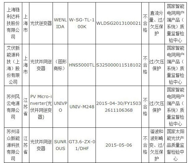 其中,本次共抽查了北京、河北、上海、江蘇、浙江、安徽、福建、山東、河南、湖北、湖南、廣東、陜西等13個(gè)省、直轄市55家企業(yè)生產(chǎn)的55批次光伏并網(wǎng)逆變器產(chǎn)品。