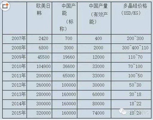 到2014年初,隨著市場回暖,多晶硅價格上升到15~17萬/噸,但國內也僅有保利協鑫、新疆特變電工、四川永祥等三四家工廠能夠在這樣的價格下保持不虧損,因此,由于多晶硅的進口屢禁不止,對國內市場沖擊仍然較大,因此,價格于2014年下半年再度下跌,這種跌勢持續到2015年底,多晶硅的價格在10~12萬/噸的低價徘徊。這樣的價格如果再持續一段時間,可以預見的是,中國的多晶硅產能中將有更多的有效產能永久變為無效產能。