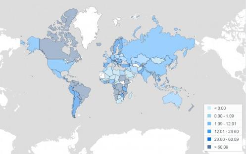 上圖為再生能源輸出比重圖。從圖中可以看出部分拉丁和非洲國家目前再生能源的使用率已超過了80%。比如,巴西已達到82.47%,剛果達到了99.56%。這些地區主要以水電為主,因此占比較大。非洲撒哈拉以南地區,再生能源的使用比例相差很大,比如馬拉維為9.8%,中非共和國為10.8%,莫桑比克為20.2%。這些地區再生能源比例偏低,主要因為不具備再生能源使用的條件或缺乏投資。