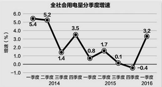 2016年4月15日,國家能源局發(fā)布用電量數(shù)據(jù),今年一季度我國用電量約13524億千瓦時(shí),增速并未延續(xù)去年下半年的下行趨勢(shì),反而回升至3.2%,同比提高2.4個(gè)百分點(diǎn),環(huán)比上年第四季度提高3.6個(gè)百分點(diǎn)。通過測算,有三個(gè)方面的因素導(dǎo)致今年一季度用電量增速回升:第一,由于經(jīng)濟(jì)增長帶動(dòng)用電量增加約205億千瓦時(shí),拉動(dòng)用電量增長約1.4個(gè)百分點(diǎn);第 二,2月為閏月,一季度日歷天數(shù)同比多1天,增加用電量約150億千瓦時(shí),拉動(dòng)用電量增長約1.1個(gè)百分點(diǎn);第三,今年一季度氣溫明顯低于上年同期 (如今年1、2月份我國平均氣溫同比分別偏低2.2攝氏度和1.4攝氏度),帶動(dòng)采暖電量增加約70億千瓦時(shí),拉動(dòng)用電量增長約0.7個(gè)百分點(diǎn)。