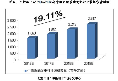 綜合以上因素和資料,中投顧問《2016-2020年中國生物質(zhì)能發(fā)電產(chǎn)業(yè)投資分析及前景預(yù)測報告》預(yù)計,2019年我國生物質(zhì)能發(fā)電行業(yè)裝機容量預(yù)計突破2,617億千瓦時,行業(yè)年均復(fù)合增長率約為19.11%。