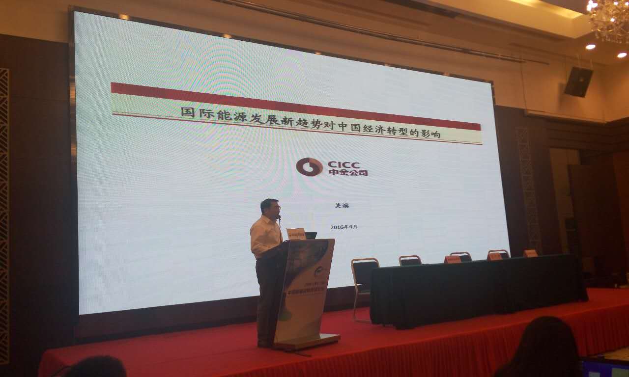 中國國際金融有限公司研究部董事總經(jīng)理關(guān)濱做主題演講:國際能源發(fā)展新趨勢對(duì)中國經(jīng)濟(jì)轉(zhuǎn)型的影響。