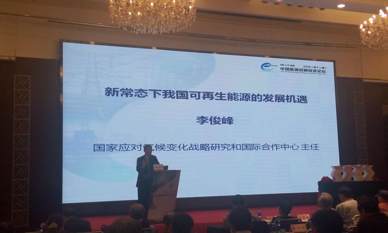 國家應(yīng)對(duì)氣候變化戰(zhàn)略研究和國際合作中心主任李俊峰做主題演講,題目是新常態(tài)下我國可再生能源的發(fā)展機(jī)遇。