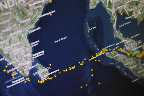 新加坡海域密密麻麻的油輪,其中大部分都處于靜止?fàn)顟B(tài)