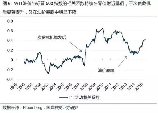 由于當今包括石油在內的大宗商品已經演變為一類可投資的資產類別,具有顯著的金融屬性,因此作為一類風險資產,油價的變動同樣受到資本市場風險偏好的影響。在以上這三類因素當中,需求預期和市場風險偏好可以同時作用于石油和股票兩個市場。