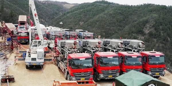 技術(shù)服務(wù)的實施離不開穩(wěn)定可靠的設(shè)備支撐。此次作業(yè)由8臺2500型壓裂車、1臺混砂車、1臺儀表車聯(lián)合作業(yè),所有車輛均為科瑞石油自主研發(fā)制造。超預(yù)期的作業(yè)效果再次印證了科瑞壓裂設(shè)備的優(yōu)良品質(zhì)。