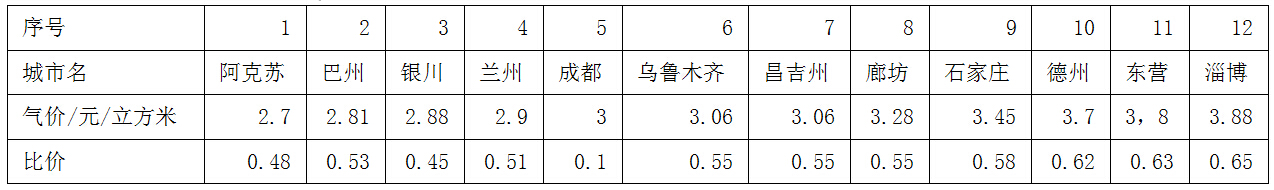 4這些城市的車用天然氣價格較為低廉、“油氣比價”均較合理,都在0.45:1至 0.65 :1之間 (詳見表三)