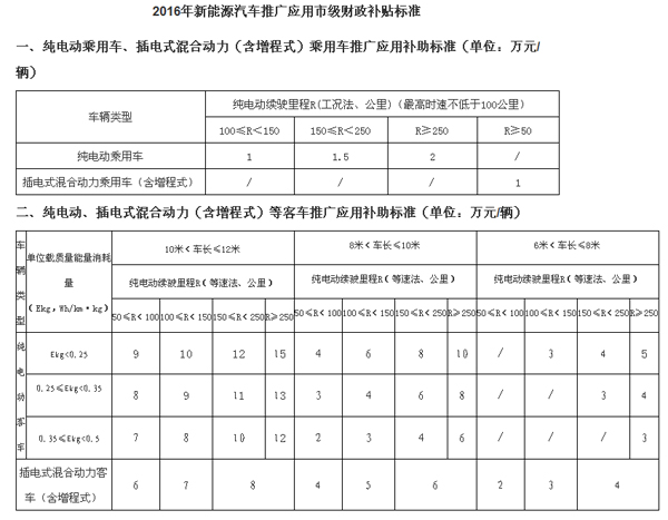 1、2016年新能源汽車(chē)推廣應(yīng)用市級(jí)財(cái)政補(bǔ)貼標(biāo)準(zhǔn)