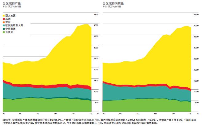 2.煤炭產量下降2.0%,是1998年以來中國煤炭產量的第二次下降。同期全球煤炭消費下降1.8%,遠低于2.1%的10年期平均增幅,煤炭在全球一次能源消費量中的比重已降至29.2%,2005年以來的最低份額。戴思攀認為,煤炭去年急劇下降,創造了世界歷史,主要因素在于中國和美國。去年的美國,煤炭被擠出發電市場;而中國過去15年煤炭消費的增長推動了全球的增長,但去年中國煤炭消費也出現了下降,也促進了全球煤炭消費的下降。