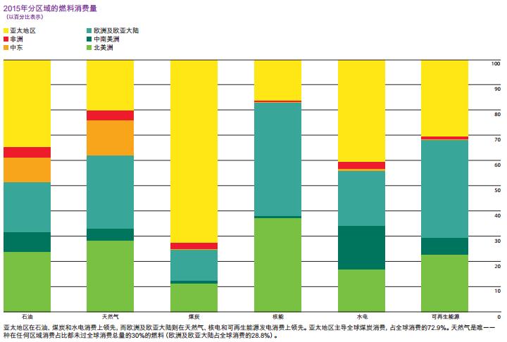 2015年天然氣產量繼續穩定、快速增長,主要來源于美國。美國的增長量占全球的一半以上。中國去年天然氣需求只增長了5%,與其10年期平均增速(15.1%)相比仍顯疲弱。戴思攀指出,全球天然氣價格走低,所以工業行業更傾向于用天然氣,所以天然氣在工業部門的比重上升了。