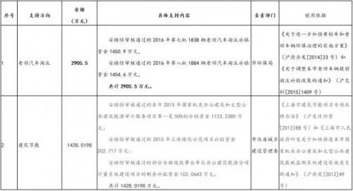 1、按照《上海市人民政府辦公廳印發(fā)市交通委等六部門制訂的<關(guān)于進(jìn)一步加強(qiáng)黃標(biāo)車和老舊車輛環(huán)保治理的實(shí)施方案>的通知》(滬府辦發(fā)[2014]23號)、《關(guān)于調(diào)整本市老舊車輛提前淘汰補(bǔ)貼政策的通知》(滬交科[2015]1409號)等有關(guān)規(guī)定,安排經(jīng)審核通過的2016第七批1838輛老舊汽車淘汰補(bǔ)貼資金1450.9萬元,第八批1884輛老舊汽車淘汰補(bǔ)貼資金1454.6萬元,共計2905.5萬元。