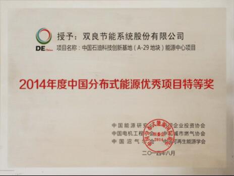 2014年:中石油昌平數(shù)據(jù)中心項目,國家首批分布式能源示范項目 榮獲2014年度中國分布式能源優(yōu)秀項目特等獎