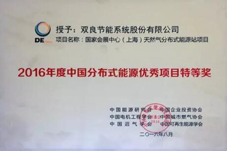 在剛剛結(jié)束的"2016中國分布式能源國際論壇"會議上,雙良憑借國家會展中心(上海)天然氣分布式能源站項目的成功運行,斬獲"2016年度分布式能源優(yōu)秀項目特等獎"的殊榮,實現(xiàn)了2014-2016年中國分布式能源優(yōu)秀項目特等獎三連冠。