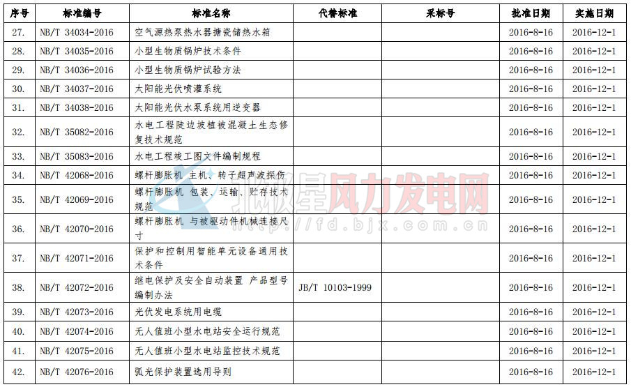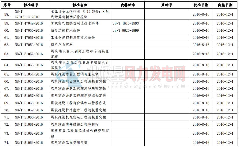 國(guó)家能源局今日發(fā)布2016年第6號(hào)公告。公告稱,國(guó)家能源局審查批準(zhǔn)了《核電廠常規(guī)島及輔助配套設(shè)施建設(shè)施工質(zhì)量驗(yàn)收規(guī)程第8部分:保溫及油漆》等144項(xiàng)行業(yè)標(biāo)準(zhǔn)(能源標(biāo)準(zhǔn)(NB)75項(xiàng)和電力標(biāo)準(zhǔn)(DL)69項(xiàng))。其中風(fēng)電行業(yè)標(biāo)準(zhǔn)7項(xiàng),8月16日正式批準(zhǔn),12月1日正式開始實(shí)行。以下為公告原文及行業(yè)標(biāo)準(zhǔn)目錄: