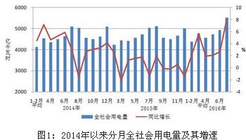 2016年1-7月份電力工業運行簡況