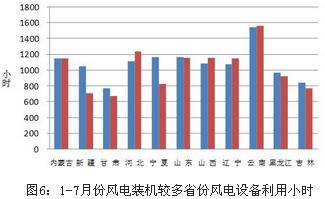 分類型看,1-7月份,全國水電設備平均利用小時2080小時,同比增加168小時;水電裝機容量超過1000萬千瓦的7個省份中,湖南、湖北、廣西和貴州同比分別增加800、386、299和239小時,青海、云南和四川同比分別降低243、231和32小時。全國火電設備平均利用小時2335小時,同比降低222小時;其中山東、江蘇、河北等13個省份利用小時數超過全國平均水平;在低于全國平均水平的省份中,云南和西藏最低,不足1000個小時,分別是724和53小時;與上年同期相比,除北京外,其他省份火電利用小時都有所降低,其中,青海、福建和湖南降低超過600小時。全國核電設備平均利用小時3982小時,同比降低200小時。全國風電設備平均利用小時1038小時,同比降低68小時。
