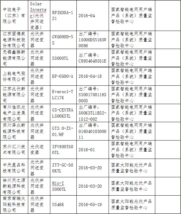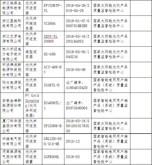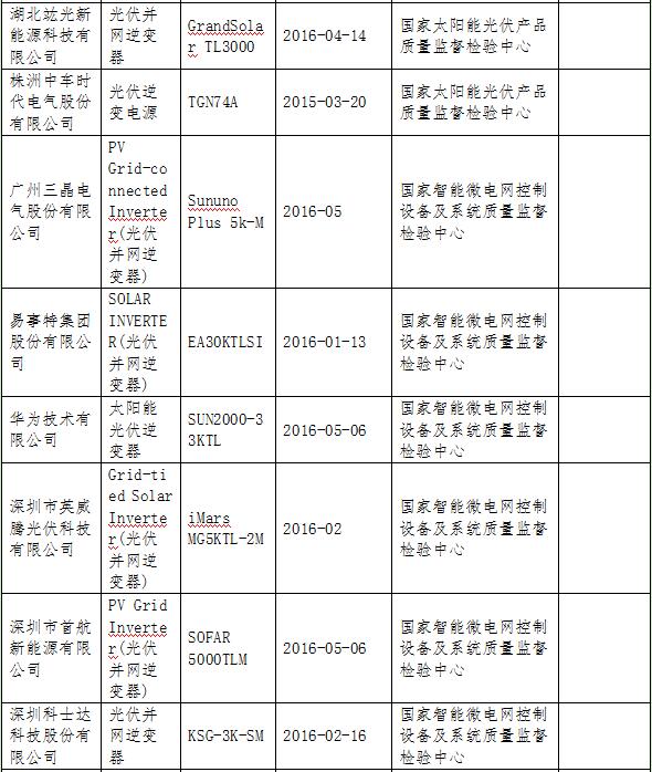 光伏并網(wǎng)逆變器產(chǎn)品質(zhì)量國家監(jiān)督抽查產(chǎn)品及其企業(yè)名單(合格)