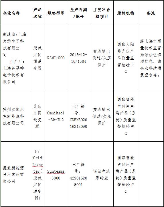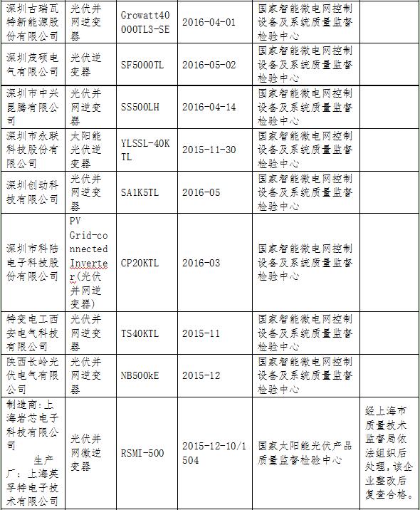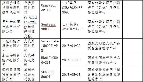 光伏并網(wǎng)逆變器產(chǎn)品質(zhì)量國家監(jiān)督抽查產(chǎn)品及其企業(yè)名單(不合格)