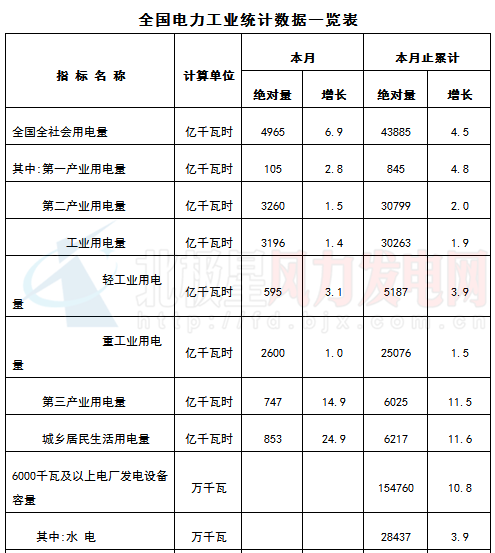 附:全國(guó)電力工業(yè)統(tǒng)計(jì)數(shù)據(jù)
