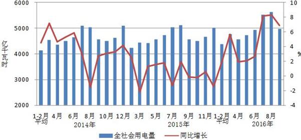 1-9月份,全國全社會用電量43885億千瓦時,同比增長4.5%,增速比上年同期提高3.7個百分點。