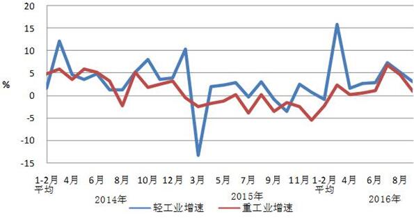 圖2: 2014年以來分月輕、重工業用電量增速情況