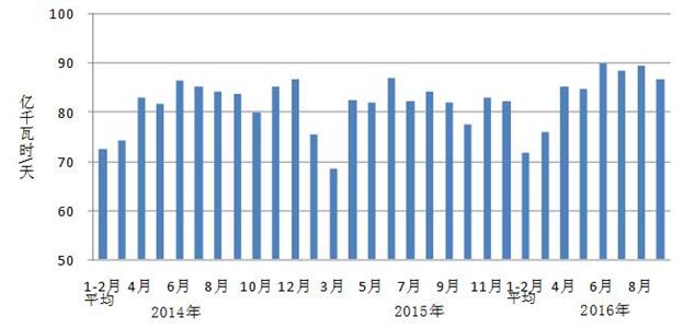 9月份,四大高載能行業用電量合計1484億千瓦時,同比增長0.6%,增速比上年同期提高3.5個百分點,占全社會用電量的比重為29.9%。其中,化工行業用電量350億千瓦時,同比下降4.9%,增速比上年同期回落5.5個百分點;建材行業用電量281億千瓦時,同比增長4.1%,增速比上年同期提高11.2個百分點;黑色金屬行業用電量416億千瓦時,同比下降0.7%,增速比上年同期提高7.8個百分點;有色金屬冶煉行業438億千瓦時,同比增長4.3%,增速比上年同期提高0.1個百分點。