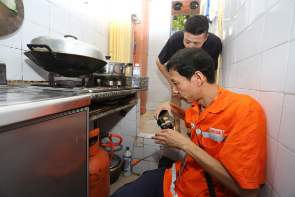 圖為喜威安全技術工程師免費上門為居民進行燃氣安全檢測