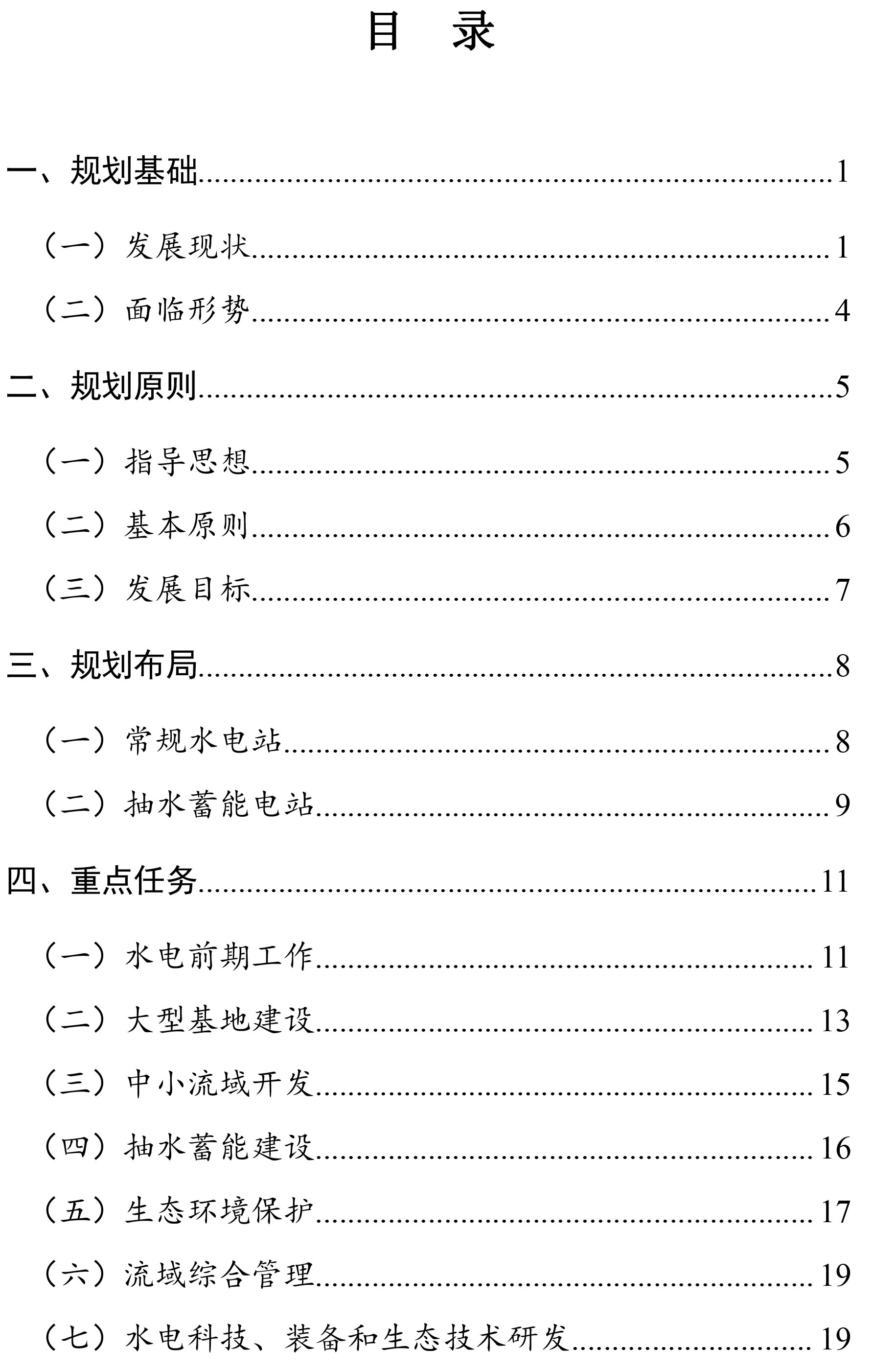 ——完善水電管理體制機制。建立與國家相關法規政策、改革路線相銜接、相匹配的水電行業管理體制機制。根據國務院簡政放權要求和電力體制改革精神,推進水電建設市場化,鼓勵抽水蓄能電站投資主體多元化,落實項目法人的市場主體地位,完善項目法人責任制的水電建設管理體制。轉變政府職能,強化行業服務和政府監管。進一步理順抽水蓄能電站運行管理體制和電價形成機制。總結金沙江水電開發協調工作經驗,研究建立西藏水電開發協調機制,促進藏東南水電基地開發。研究流域梯級電站水庫綜合管理體制,提出已建跨界水電站水庫綜合管理體制方案。完善大壩運行安全、工程施工安全及工程質量監管體系,強化建設期、過渡期、運行期全過程安全監管,加強大壩安全注冊登記和定期檢查工作,健全應急管理工作機制,提升水電站安全水平。