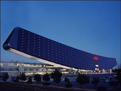 印象特別深刻的是,一天晚上看到一棟樓的窗戶亮著,從里面的擺設,就可以知道這是總裁辦公室,這是會議室,那是接待室和辦公室。遠看過去,這個建筑似乎沒有窗戶。我當時很奇怪,怎么沒有窗戶呢?原來,他們用非常好的技術把窗戶隱藏在整個墻體里面,看上去是消失的,沒有窗框,而且玻璃很講究,晚上讓室內燈光亮起來,室內場景就是建筑的裝飾。