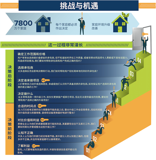 很多想對(duì)住宅進(jìn)行深度節(jié)能改造的用戶都會(huì)面臨一個(gè)極具挑戰(zhàn)的推進(jìn)過程,涉及各種復(fù)雜的問題,如下圖所示。正是由于這個(gè)原因,很多人都放棄了對(duì)住宅能效的追求。